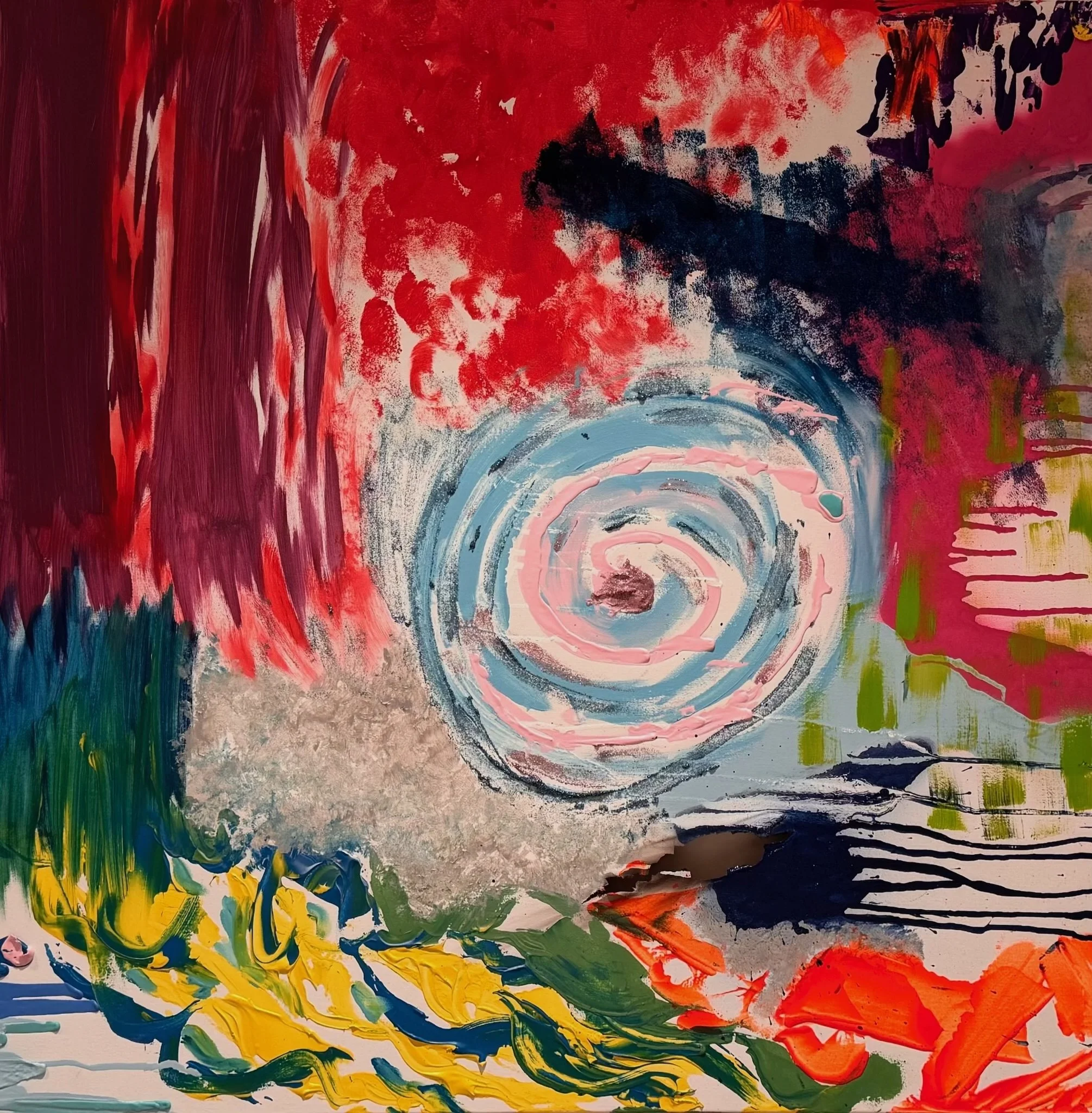 Acrylic and spray paint on canvas